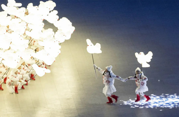2月4日晚,第二十四届冬季奥林匹克运动会开幕式在北京国家体育场举行。这是开幕式上的“雪花”环节。陶冉 摄 ( “一起向未来——中国冰雪运动摄影大展”参展作品)