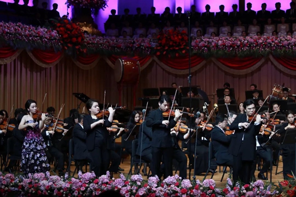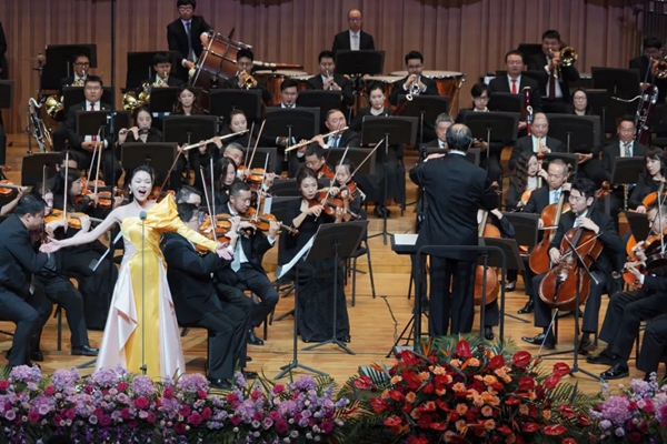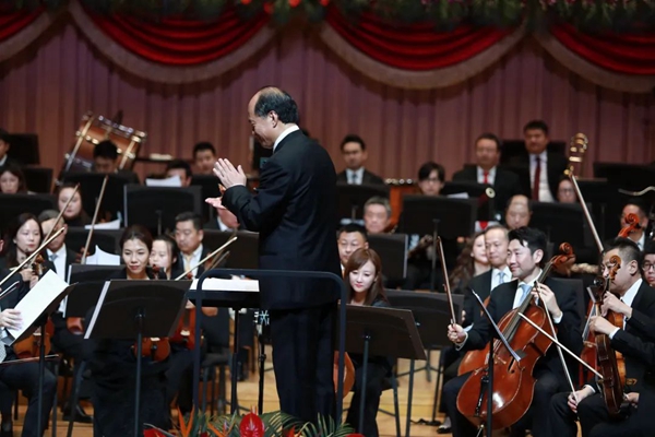 音乐会在余隆执棒中国爱乐乐团和成都交响乐团共同演绎的《光荣与梦想》恢弘的旋律中正式拉开序幕。这首乐曲系中国文联、中国音协“礼赞新时代”全国交响音乐征集活动的优秀作品。