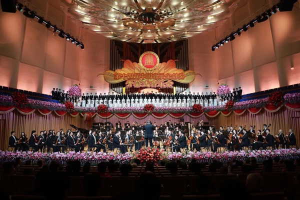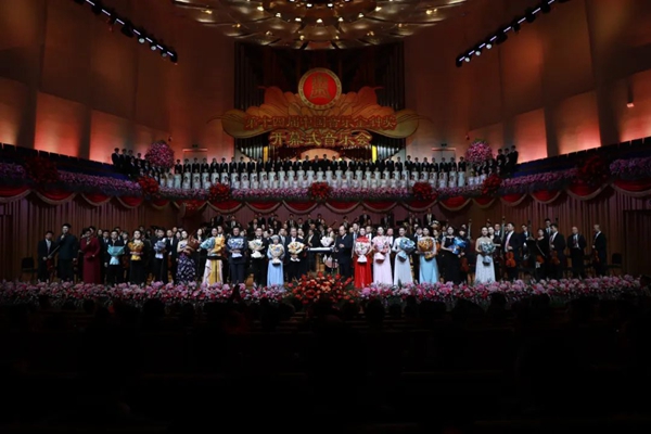 音乐会结尾,迪里拜尔、吕继宏、石倚洁、龚爽四位艺术家领唱《领航》,唱响了礼赞百年风华、奋斗崭新时代的昂扬主旋律,将现场气氛推向高潮。