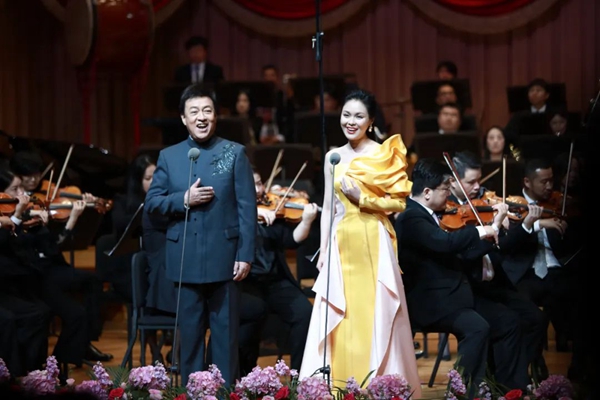 吕继宏和龚爽为观众带来男女声二重唱《婚誓》,两人的演唱配合默契,风格亲切自然,赢得观众阵阵掌声。