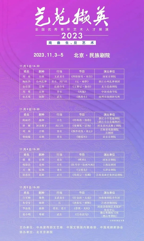 “艺苑撷英——2023全国优秀青年艺术人才展演(戏曲生、旦艺术)”节目单