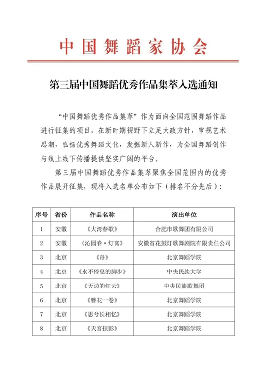 (原标题:第三届中国舞蹈优秀作品集萃入选通知)