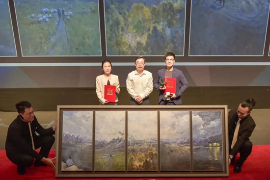 邓光辉在首映礼现场,接受由北京靳尚谊艺术基金会青年画家傅察丹青为电影创作并捐赠的五幅影片主题油画。由五幅油画拼合而成的电影官方海报也在首映礼上发布。