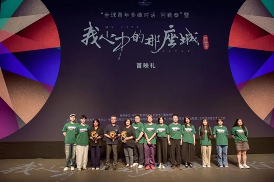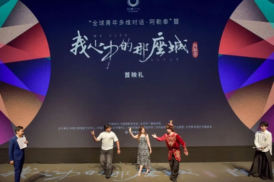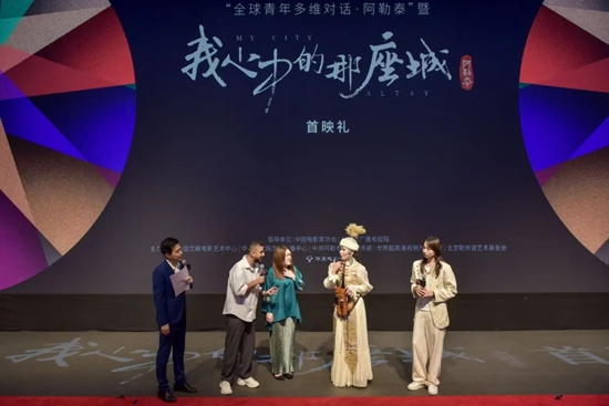 7月1日,电影《我心中的那座城——阿勒泰》首映礼暨“全球青年多维对话”专场活动在北京华夏电影中心举行。中国文联党组成员、书记处书记谢力,中国影协分党组书记、驻会副主席邓光辉,中国文联办公厅主任周由强,北京市广电局党组成员、副局长韩新星,中共阿勒泰地委委员、秘书长、宣传部部长蓝盛新,本片文学总监梅峰、剪辑指导周新霞、总制片人郝为,中国文联国内联络部副主任、一级巡视员苗宏,中国电影出版社社长余宁,中国文联电影艺术中心常务副主任宋智勤,中国外文局文化传播中心副主任王侃,以及在京专家学者、艺术家代表侯光明、邢占宇、马维干、张卫、吴军、胡建礼、朱玉卿、焦洋、陈潇潇等,与青年电影人和来自全球多国的优秀青年代表等近300人一同参加活动。
