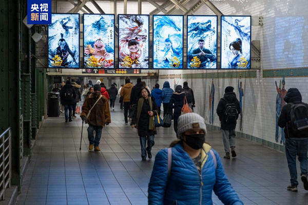 A recent photo shows "Ne Zha 2" promotional posters displayed in a subway station in New York. /CMG