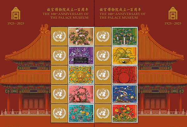 A sheet of stamps was released by the United Nations Postal Administration to mark the 100th anniversary of the Palace Museum. [Photo provided to China Daily]