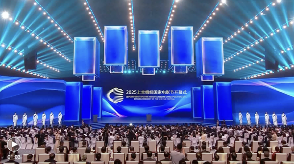 The 2025 Shanghai Cooperation Organization (SCO) Film Festival officially opened on Thursday in Chongqing. Featuring the theme "Technology & Film · Charm of the SCO," the festival spans five days and includes forums on international cooperation, tech exhibitions, tourism initiatives, and drone light shows. Highlights also include screenings of dozens of outstanding films from SCO countries and the announcement of winners of the Jinshancha (Golden Camellia) Awards at the closing ceremony on July 6.