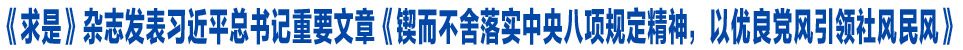 《求是》杂志发表习近平总书记重要文章《锲而不舍落实中央八项规定精神,以优良党风引领社风民风》