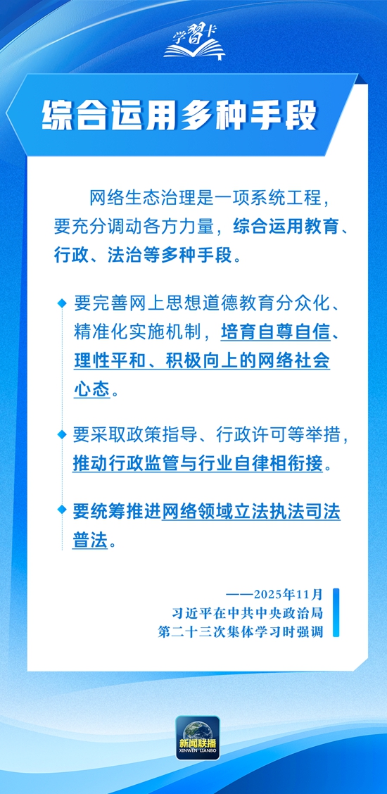 近日,习近平总书记在中共中央政治局第二十三次集体学习时发表重要讲话,对网络生态治理这一网络强国建设的重要任务作出战略部署、提出明确要求。