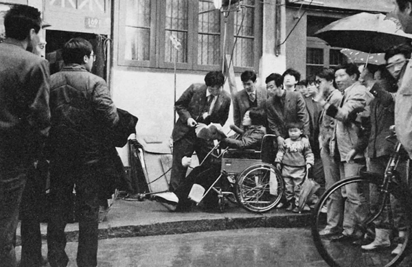 黄蜀芹(右)在《人·鬼·情》拍摄现场