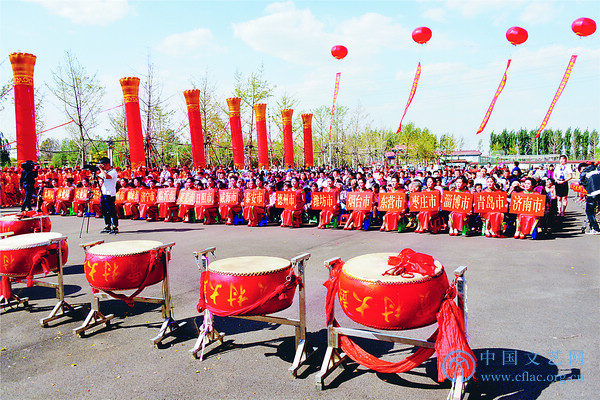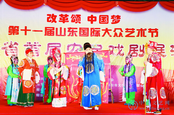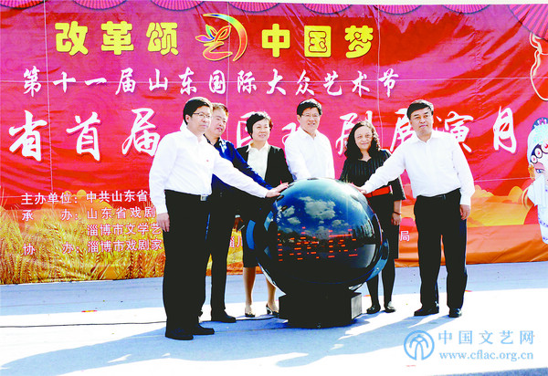 由中共山东省委宣传部、山东省文学艺术界联合会共同主办的“改革颂·中国梦”第十一届山东国际大众艺术节山东省首届农民戏剧展演月,9月30日在淄博市淄川区双杨镇赵瓦村开幕