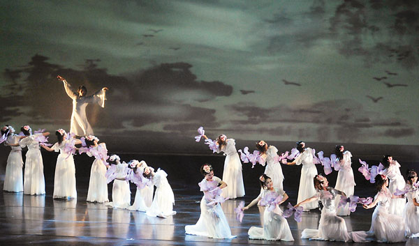 现代芭蕾舞《2Q11-Dreams》以其自由、洒脱的编舞手法,尽量发挥现代芭蕾舞的风格特色,通过一个小女孩的梦中历程,带我们进入到舞蹈的虚幻意境中,它委婉道出人生中都会因为理想而寻找一个属于自己的美梦。双人舞的编排在舞蹈中占了十分突出的位置,丰富的动作组合,以及与群舞之间的和谐互动,使寻梦的内在情感逐步提升。其中女主角的表演甚为突出,她技巧稳定、舞姿纯熟,使舞台生色不少。结尾部分的大群舞,感情深沉,配以音乐和朗诵,带出了迷蒙中寻梦的意境。