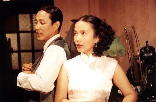黄蜀芹(右)在《人·鬼·情》拍摄现场