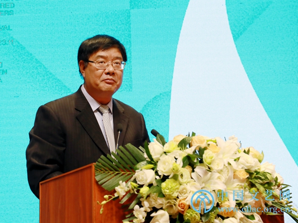 10月22日,第28届中国金鸡百花电影节暨第32届中国电影金鸡奖新闻发布会在京举行。图为厦门市委宣传部副部长、市文发办主任戴志望通报本届电影节筹备工作情况。中国文艺网 韩雪竹 摄