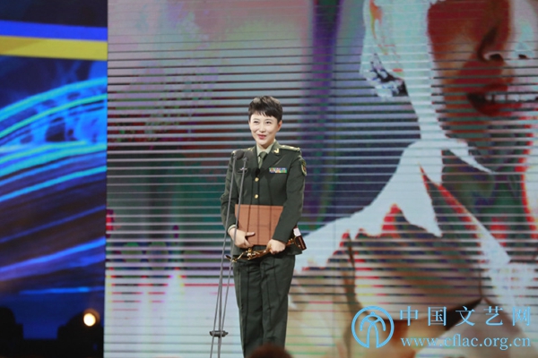 10月14日晚,第12届中国金鹰电视艺术节、第29届中国电视金鹰奖颁奖晚会在湖南长沙举行。图为申捷获最佳编剧奖。