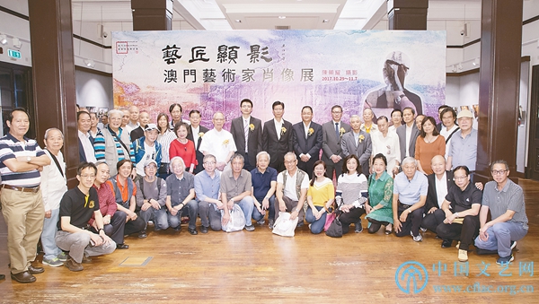 2017年“艺推”最后一个展览“艺匠显影”——澳门艺术家肖像展开幕式现场,参与合影的很多艺术家都参加过“艺推”计划