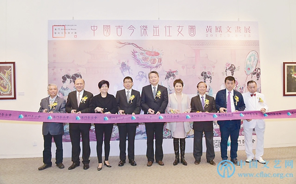 “澳门艺术家推广计划”持续向公众推介澳门艺术家的创作,图为“中国古今杰出仕女图——黄凤文画展”开幕式现场