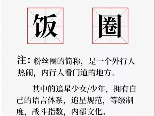 “饭圈文化”,顾名思义,即粉丝圈的文化,是一种追星文化。