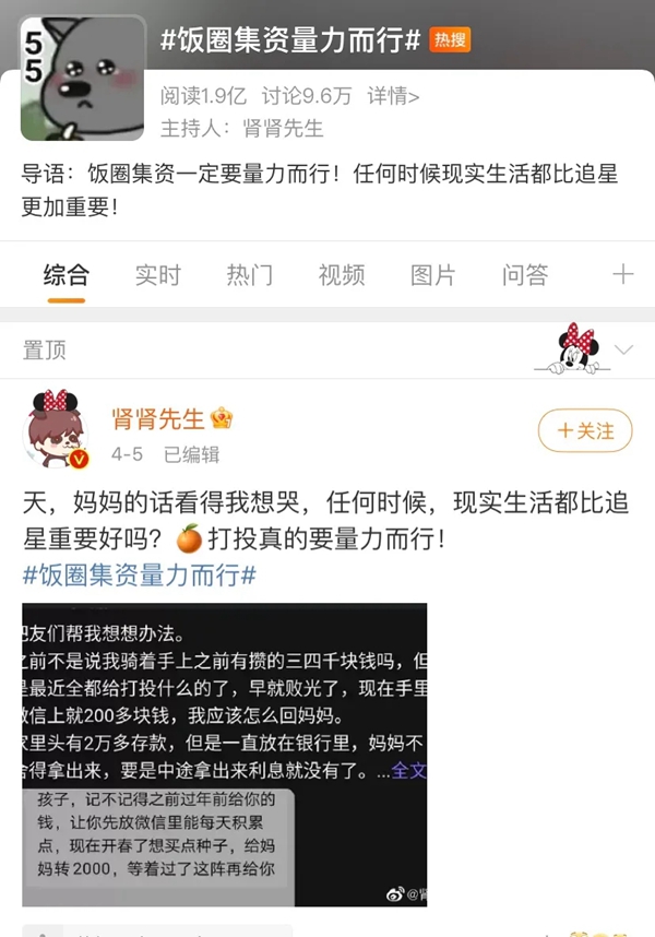 近日,一条关于追星的求助帖在网络上迅速引起热议,贫困家庭孩子为偶像“打投”一掷千金,这样疯狂的追星行为让#饭圈集资量力而行#的话题随之登上微博热搜。众网友表示看着令人心酸,并呼吁大家理智追星,自己的生活才是应该放在第一位的啊!