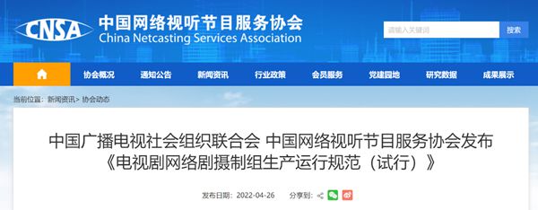 以下是《电视剧网络剧摄制组生产运行规范(试行)》全文:
