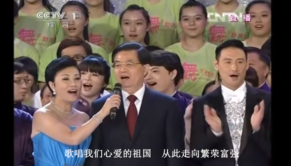最后同胡锦涛主席同台高唱《歌唱祖国》。