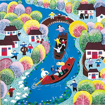 随着全面推进乡村振兴,越来越多农民画画家把目光聚焦美丽乡村,展现新时代乡村的自然之美、人文之美,助力乡村塑形、铸魂。