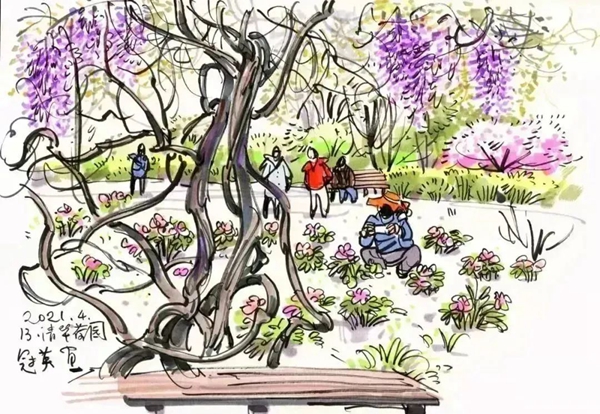吴冠英非常注重写生,他认为,专业作者不能完全靠灵感,而是要掌握创作的方法,创作需要不断去构思,不断挖掘各种可能的表达,坚持写生的目的就是要去观察一个人、一朵花、一棵树……