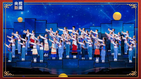 “如意”舞台上演心意满满的节目。以“红包”为主题的歌舞节目,在歌词、表演和服装设计上融入剪纸、皮影、中国结、风车等非遗和春节民俗元素;来自四川大凉山的妞妞合唱团唱响天籁童声,在虚拟现实等技术加持下,一方舞台幻化成广阔宇宙空间,再现九天揽月千年梦成。