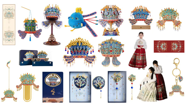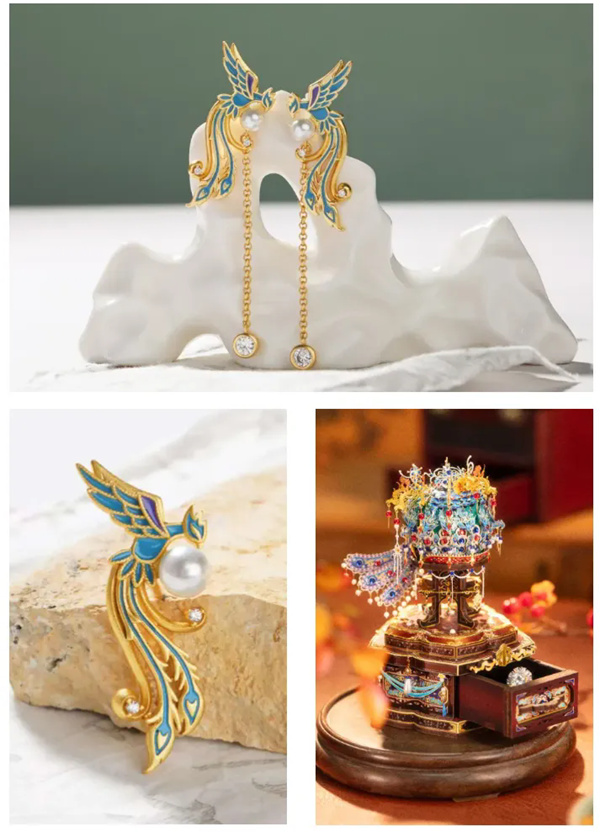 近期即将亮相的凤冠系列文创新品:凤羽鎏彩凤冠耳饰及胸针、九龙九凤金属拼插宝匣