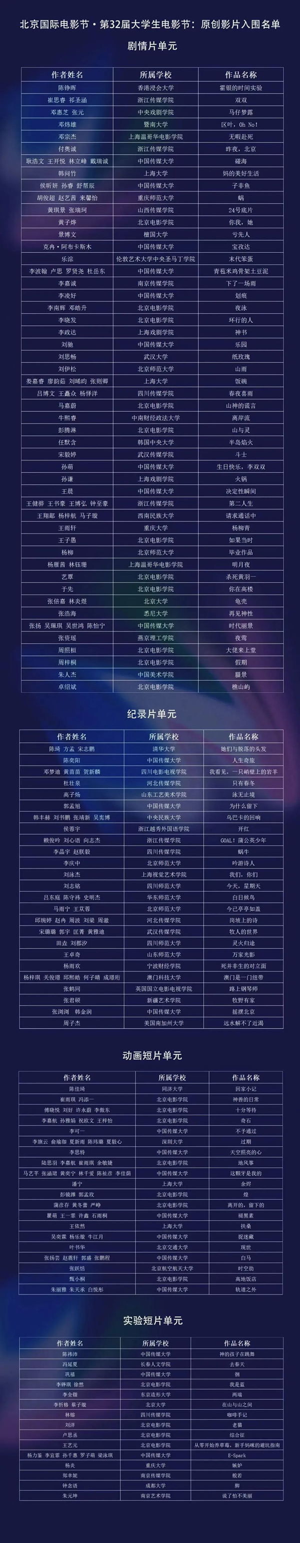 (原标题:入选名单 | 第25届国际大学生原创影片推选入选结果公布)