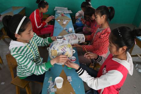 这就是我支教的第二个阶段,感动。试图用艺术的力量让孩子们重新变得敏感,变得感性和温暖。我们尝试着让他们走出教室,去观察柳叶是怎样生长的,去画小草变绿的模样。尝试着带他们用泥巴做一些好玩的造型,尝试着用身边的废纸做成小动物、做成瓶瓶罐罐。特别是我们的谢玉强老师,他是中国美协会员,又当了十几年的幼师老师,无论是纸杯、气球、矿泉水瓶、易拉罐,卷纸,都能带着孩子们做出漂亮的小工艺品,让孩子们玩的如痴如醉。我们通过从身边的任何事物里边发现艺术,让孩子们对这个世界保持着他们的好奇心,让孩子们的心一直都是温热的。希望他们在碰到平常习以为常的事情以后,还可以问一下为什么,就像牛顿好奇苹果为什么会砸到他的头上一样。慢慢地孩子们笑容多了起来,交流多了起来,我知道我们的尝试是成功的。这些实践教育了我,我一直在想,如果我们多做一些什么,是不是孩子们的生活就能够更加丰富多彩,是不是孩子们就能够更加热爱生活。 我想,这也许就是文艺支教的意义何在。乌鸦反哺,羔羊跪乳,何况是人呢,艺术启迪人的情感,在冷漠的社会中,让这些孩子保持一颗鲜活的心灵。