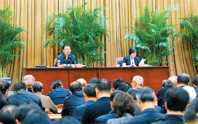 中组部常务副部长沈跃跃主持会议并传达十八大精神。(特约记者 仲组轩)