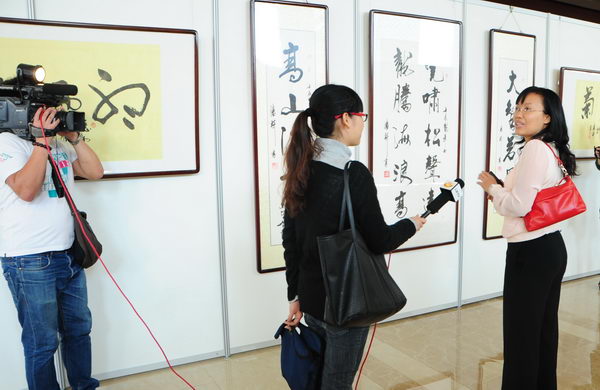 展厅一角。图为展览吸引了众多书法爱好者和各界人士前来观摩。