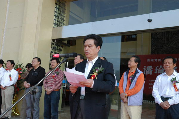 韦守德代表自治区文联、广西书协在开幕仪式上致辞。他说,在举国喜迎党的十八大召开和庆祝来宾建市十周年的喜庆日子里,“潘琦书法精品展” 在来宾开展成为广西文艺界的一大盛事。潘琦同志长期担任自治区主管宣传文化的领导,从政之余,以超人的勤奋和毅力一直笔耕不辍,在文艺领域的诸多门类中涉猎甚多,可谓著述等身,《潘琦文集》是其多方面才华的充分展示。在书法领域,潘主席提出并践行“八桂书风”,主张书法要牵系家国大事,书法要服务时代,满足群众精神需要。此次展出的80多件书法精品,既有宏篇巨制,也有尺牍小品,形式丰富、风格多样,反映了书家较高的艺术功力和深厚的学养。韦守德指出,潘琦主席的这次书法展览引起我们很多思考。思考传承和创新的关系,思考字内、字外的功夫关系,思考如何将传统文化和时代特色相结合,把艺术作为一种载体,为群众服务,为时代造福。