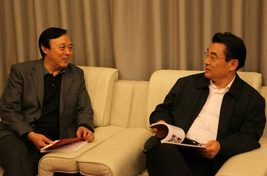 11月3日晚,“赞歌献给党”——喜迎党的十八大胜利召开原创歌曲音乐会在沈阳音乐学院音乐厅奏响。图为省人大常委会副主任李文科与李春晓书记进行亲切交谈。辽宁文学艺术网 王冬 摄