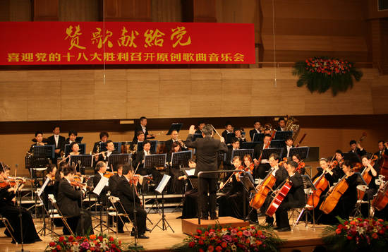 朵朵葵花向太阳,首首赞歌献给党。11月3日晚,由辽宁省文学艺术界联合会、辽宁省广播电影电视局、辽宁省音乐家协会联合主办,辽宁歌剧院、沈阳音乐学院协办的“赞歌献给党”——喜迎党的十八大胜利召开原创歌曲音乐会在沈阳音乐学院音乐厅奏响。省人大常委会副主任李文科,省委宣传部常务副部长张玉珠、副部长丁宗皓,省文联党组书记、副主席李春晓,省广电局局长、党组副书记李厚朴,省文化厅党组成员、副厅长赵奎伟,沈阳音乐学院院长刘辉,省文联党组成员、副主席伊忱,省文联党组成员、副主席林建宇,辽宁歌剧院院长车英,辽宁歌剧院党委书记胡志强等领导出席并观看演出。