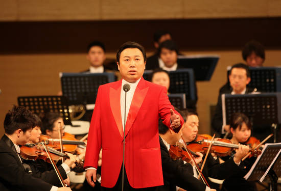 11月3日晚,“赞歌献给党”——喜迎党的十八大胜利召开原创歌曲音乐会在沈阳音乐学院音乐厅奏响。图为董伟达作词,潘兆和作曲,陈默演唱的歌曲《国旗颂》。辽宁文学艺术网 王冬 摄