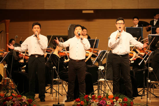 11月3日晚,“赞歌献给党”——喜迎党的十八大胜利召开原创歌曲音乐会在沈阳音乐学院音乐厅奏响。图为赵严华作词,刘威作曲,赵松林、王健、王楚演唱的歌曲《青春心语》。辽宁文学艺术网 王冬 摄