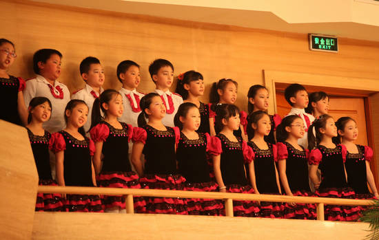 11月3日晚,“赞歌献给党”——喜迎党的十八大胜利召开原创歌曲音乐会在沈阳音乐学院音乐厅奏响。图为胡宏伟作词,刘丹作曲,沈河区文化路小学佳音合唱团演唱的歌曲《自从认识了镰刀铁锤》。辽宁文学艺术网 王冬 摄