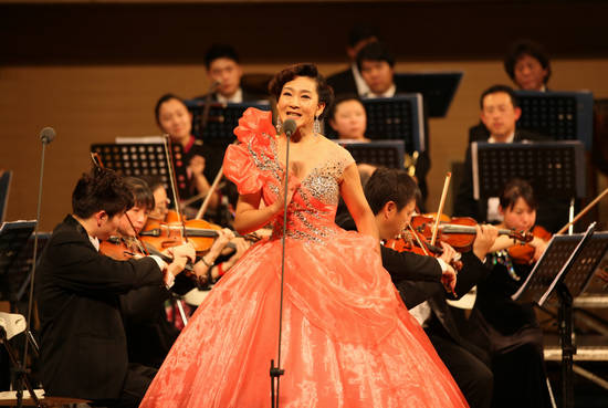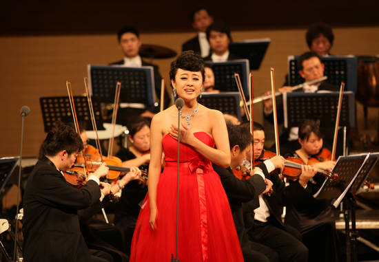 11月3日晚,“赞歌献给党”——喜迎党的十八大胜利召开原创歌曲音乐会在沈阳音乐学院音乐厅奏响。图为邬大为作词,陈涤非作曲,赵丽丽演唱的歌曲《太空的交响》。辽宁文学艺术网 王冬 摄