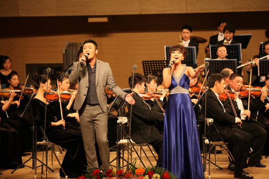 11月3日晚,“赞歌献给党”——喜迎党的十八大胜利召开原创歌曲音乐会在沈阳音乐学院音乐厅奏响。图为贾铮作词,秋子作曲,刘楠楠、田宇演唱的歌曲《太阳升起的地方》。辽宁文学艺术网 王冬 摄