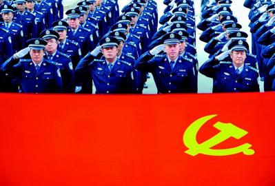 西安市劳教所召开确保十八大期间的场所安全誓师大会,上百名民警面对党旗庄严宣誓:在工作中要尽职尽责、规范执法,不辱使命、维护稳定,向党献礼。(袁景智摄)