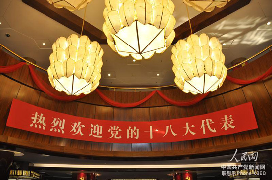 热烈欢迎十八大代表——人民网记者赵蓉摄