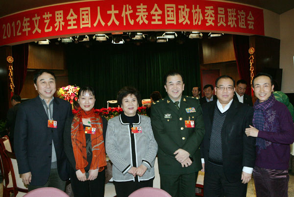3月2日,2012年文艺界全国人大代表全国政协委员联谊会在京举行。图为曲艺界代表委员合影。中国文艺网 孟祥宁 摄