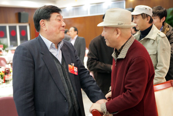 3月2日,2012年文艺界全国人大代表全国政协委员联谊会在京举行。图为文艺界代表委员交流心得。中国文艺网 孟祥宁 摄