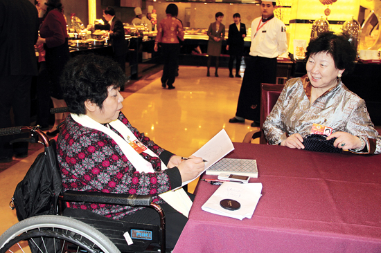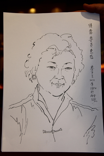 3月6日,在会议间隙,秦百兰委员现场为委员侯露画肖像。