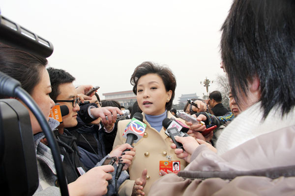 3月3日,中国人民政治协商会议第十一届全国委员会第五次会议在北京人民大会堂开幕。图为杨澜委员接受媒体采访。中国文艺网 王春梅 摄