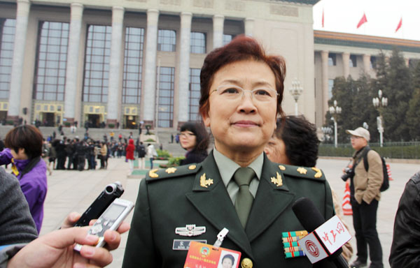 3月3日,中国人民政治协商会议第十一届全国委员会第五次会议在北京人民大会堂开幕。图为宋春丽委员接受媒体采访。中国文艺网 王春梅 摄