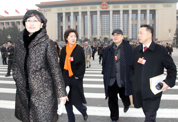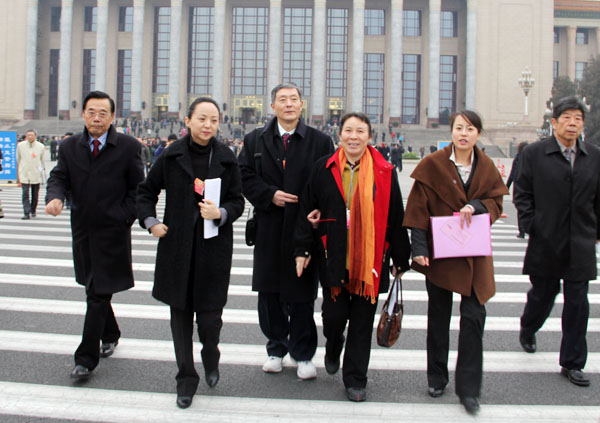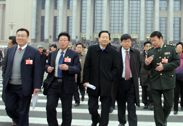 3月3日,中国人民政治协商会议第十一届全国委员会第五次会议在北京人民大会堂开幕。图为会后,委员们走出会场。中国文艺网 王春梅 摄