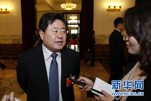 3月3日,全国政协委员、著名词曲作家徐沛东接受新华网记者专访。当日,全国政协十一届五次会议在人民大会堂举行开幕会。新华网记者 杨理光摄